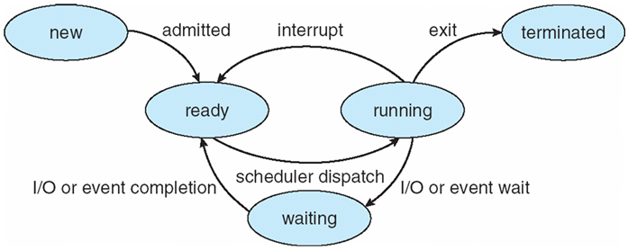 process를 실행 중일 때는, 5가지의 state(상태)가 있다