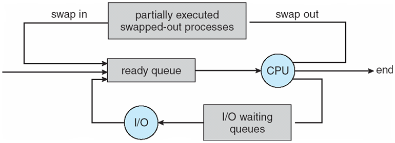 - Ready queue: (ready and waiting to execute)인 메인메모리 안에 상주하는 모든 프로세스들이다.(메모리와 CPU 사이에 있다)